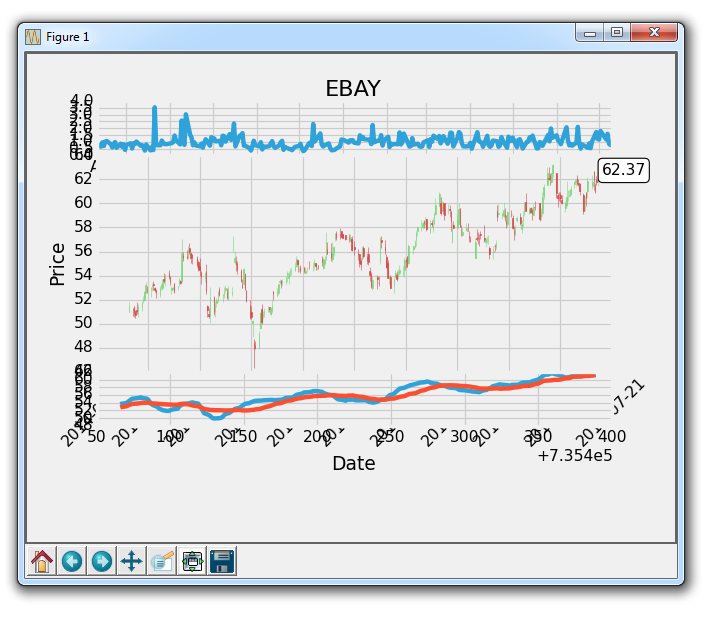 In this Matplotlib tutorial, we cover adding a couple simple functions to calculate data for us to fill our axis with. One is a simple moving average, the other is a simple high minus low calculation for prices.