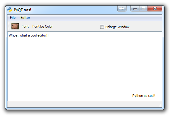 checkBox = QtGui.QCheckBox('Enlarge Window', self)